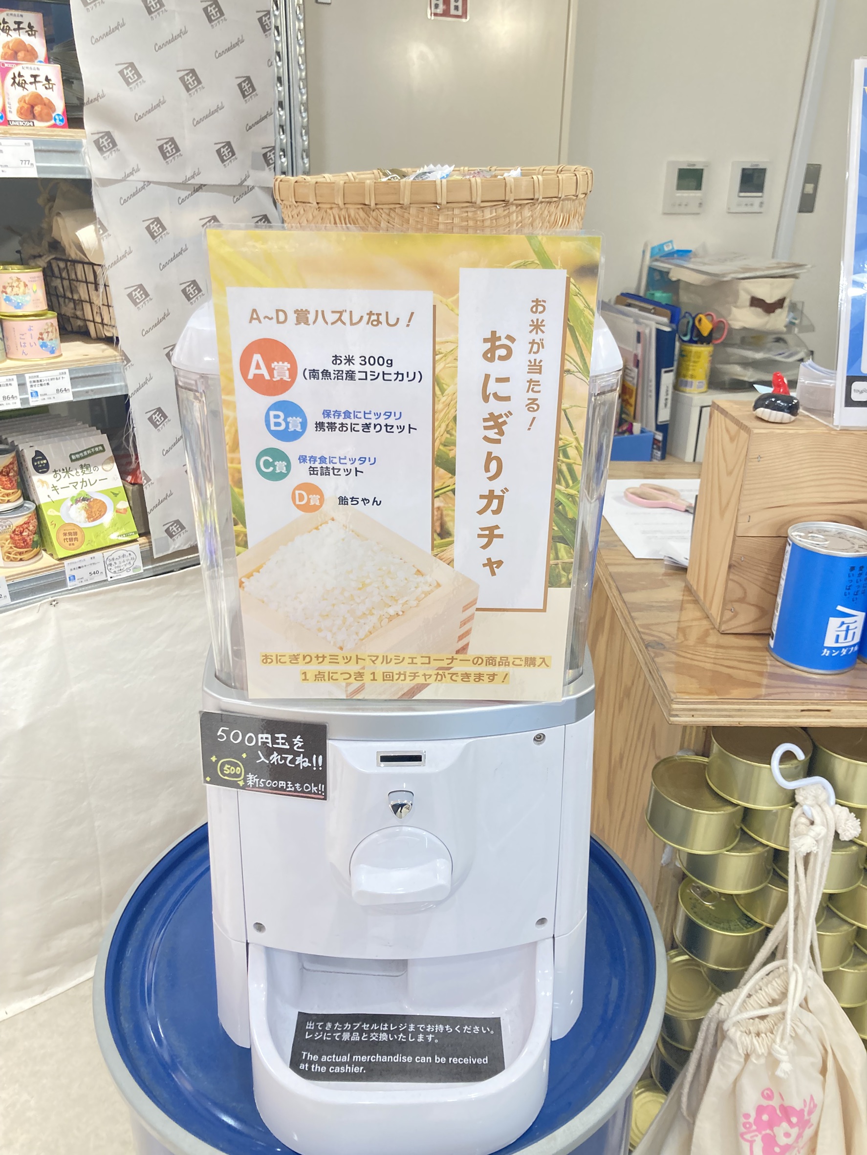 カンダフル店内、おにぎりサミットマルシェコーナーの商品をご購入1点につき、1回ガチャを回せます!
